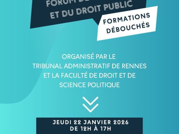 Le 3ème forum des métiers du droit public organisé par le TA avec la faculté de droit et science politique de Rennes se tiendra le 22 janvier 2025 ...